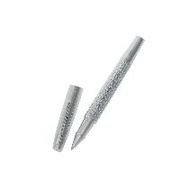 A roller ball pen with a diamond-cut wave design chrome barrel. The pen features solid brass caps and parts. Roller ball pen utilizes a twist-action mechanism and is refillable.