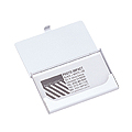A lightweight, aluminum business card case in silver finish. Also available in gold finish.