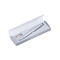 A ballpoint pen in pearl silver finish that also doubles as a massaging pen. The pen features solid brass caps and parts that guarantee a solid, quality construction. Pen is presented in a plastic case with battery. Ballpoint pen utilizes a twist-action mechanism and is refillable.