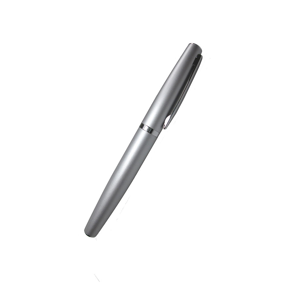 An executive roller ball pen with a gloss black barrel and chrome accents. The pen features a solid brass caps and parts construction. Roller ball pen utilizes a cap-action mechanism and is refillable. Comes in two colors.
